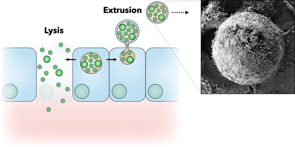 We have looked at Chlamydia entry and exit mechanisms into and out of host cells. Our detailed investigations of chlamydial exit mechanisms helped to establish a new paradigm for our understanding of chlamydial cell to cell spread within a host.